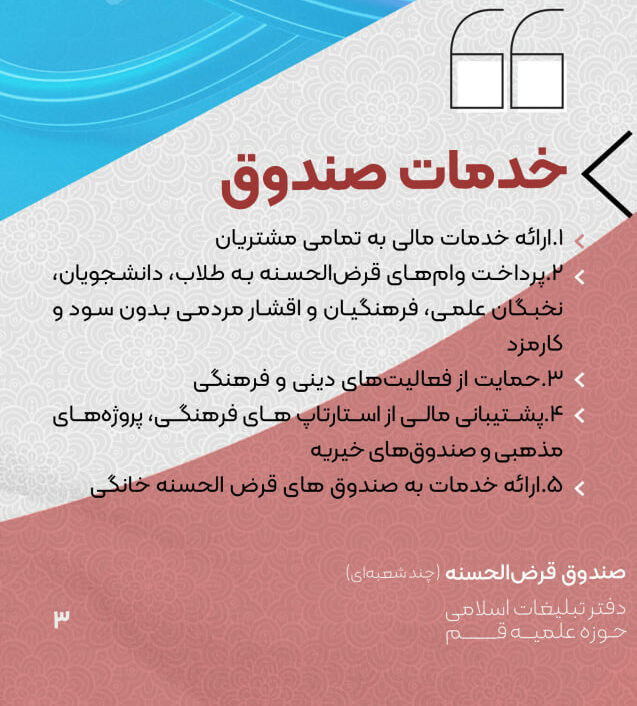 صندوق قرض الحسنه دفتر تبلیغات اسلامی در یک نگاه: خدمات صندوق قرض الحسنه دفتر تبلیغات اسلامی